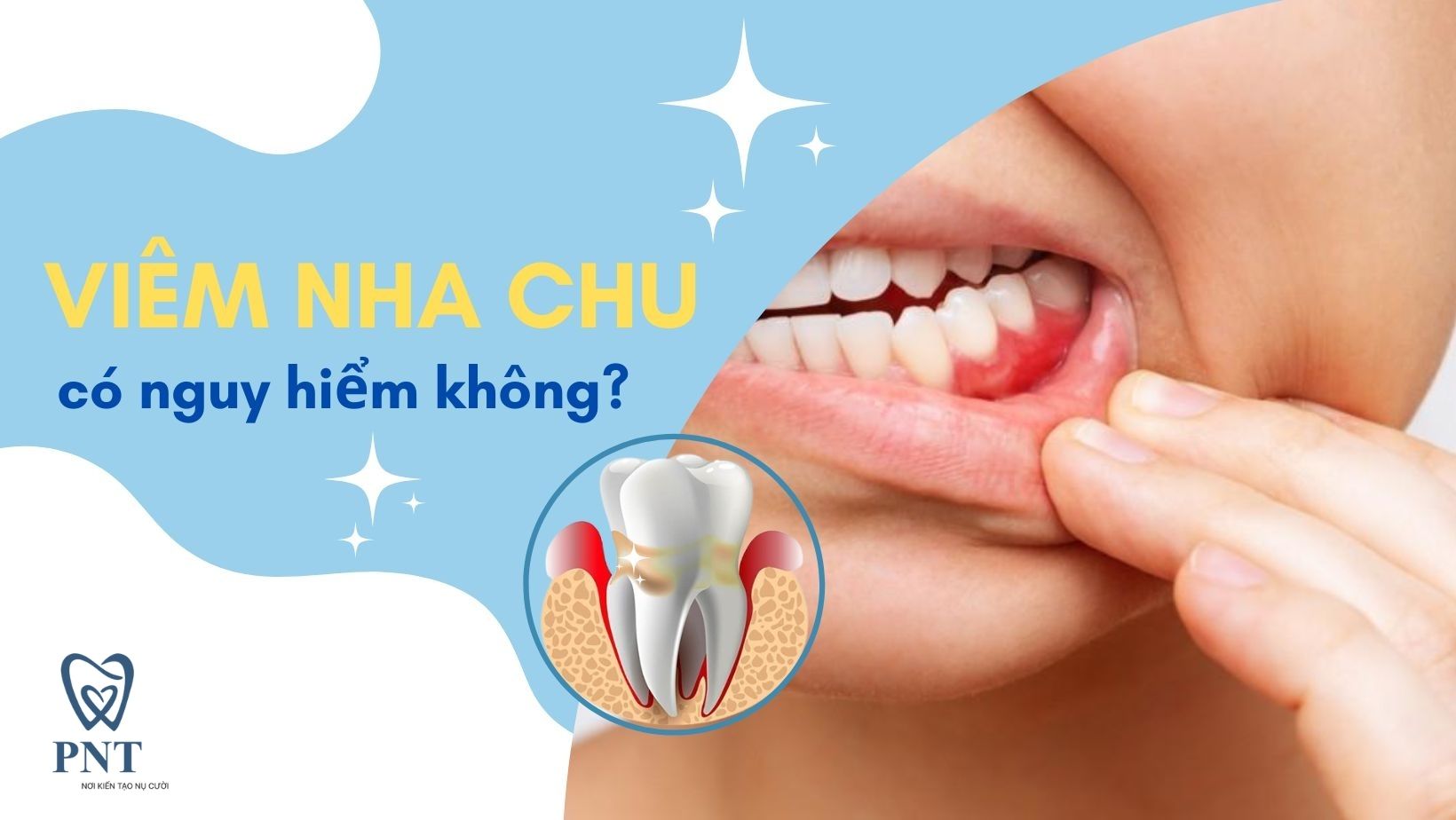 Tại Nha khoa PNT, chúng tôi cung cấp các giải pháp điều trị viêm nha chu toàn diện – an toàn – hiệu quả, kết hợp đội ngũ bác sĩ chuyên môn cao cùng công nghệ hiện đại. Bài viết dưới đây sẽ giúp bạn hiểu rõ hơn về viêm nha chu, từ nguyên nhân, dấu hiệu nhận biết, mức độ nguy hiểm cho đến các phương pháp điều trị và cách phòng ngừa lâu dài.