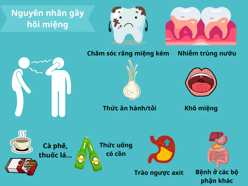 Trước khi tìm hiểu top 10 thuốc trị hôi miệng, bạn cần xác định nguyên nhân gây mùi hôi, bao gồm:
